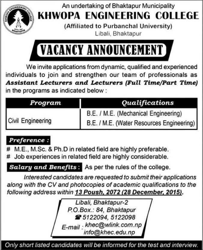 Deadline to apply: 13 Poush, 2072(28 December, 2015)
